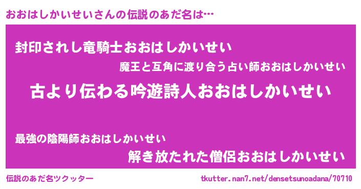| 意味不明あだ名 | 『自称おおはしかいせい』 |