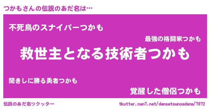 | 意味不明あだ名 | 『自称つかも』『眠気覚ましガムつかも味』 |