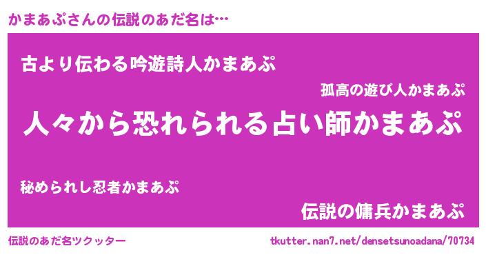 | 意味不明あだ名 | 『住所不定無職かまあぷ(47歳)』 |