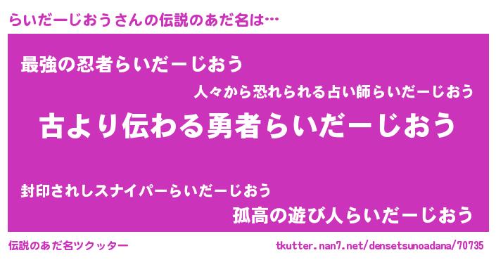 | ヘコむあだ名 | 『らいだーじおう(遠い目)』『酢こんぶ』 |