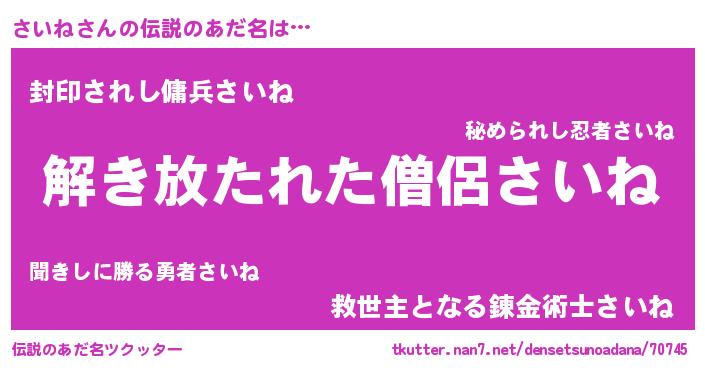 | ヒーロー風カッコイイあだ名 | 『銀牙騎士サイ』『スーパーサイネ』 |