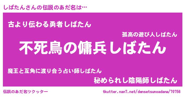 | 男性向けラノベタイトル風あだ名 | 『魔弾の王としばたん』『しばたんの憂鬱』 |