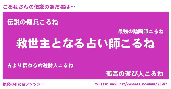 | 女子向けラノベタイトル風あだ名 | 『こるねの玉の輿計画!』『こるね恋絵巻』 |