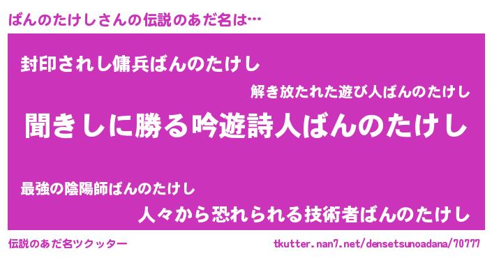| 意味不明あだ名 | 『永久保存ばんのたけし』 |