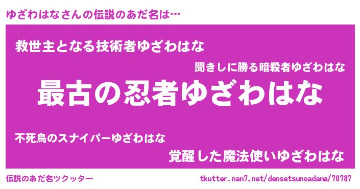 | 意味不明あだ名 | 『自称ゆざわはな』『永久保存ゆざわはな』 |