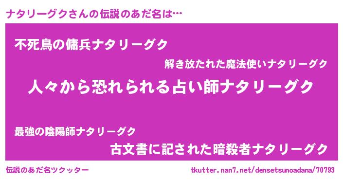 | ヒーロー風カッコイイあだ名 | 『友情の使者ナタリーグク』 |