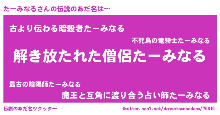 | ヒーロー風カッコイイあだ名 | 『仮面ターダー』『幻影騎士ター』 |
