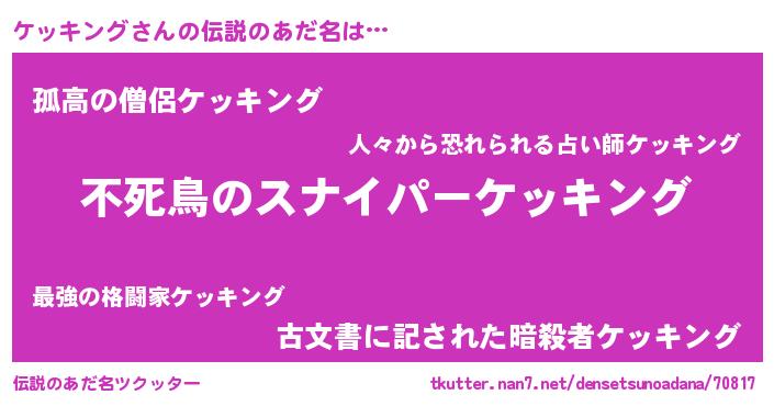 | ヒーロー風カッコイイあだ名 | 『仮面ケッダー』『スーパーケッキング』 |
