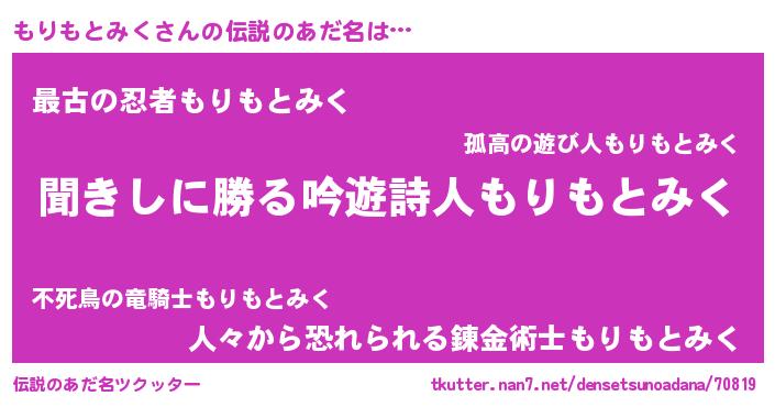 | 意味不明あだ名 | 『永久保存もりもとみく』 |