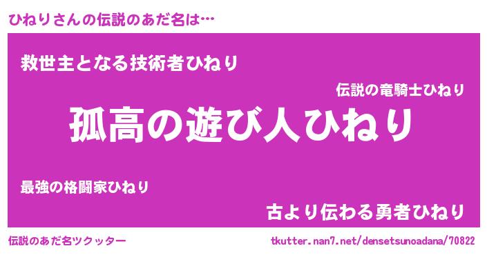 | 女子向けラノベタイトル風あだ名 | 『ひねりは平凡を望む』『ひねり恋絵巻』 |