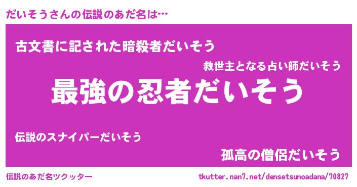 | ヒーロー風カッコイイあだ名 | 『ウルトラだいそうマン』『ネオダイソウ』 |