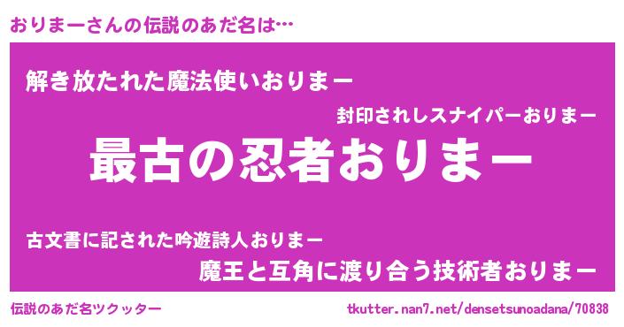 | ヒーロー風カッコイイあだ名 | 『ウルトラおりまーマン』『魔戒騎士オリ』 |