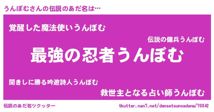 | ヒーロー風カッコイイあだ名 | 『ウルトラうんぼむマン』『仮面ウンダー』 |