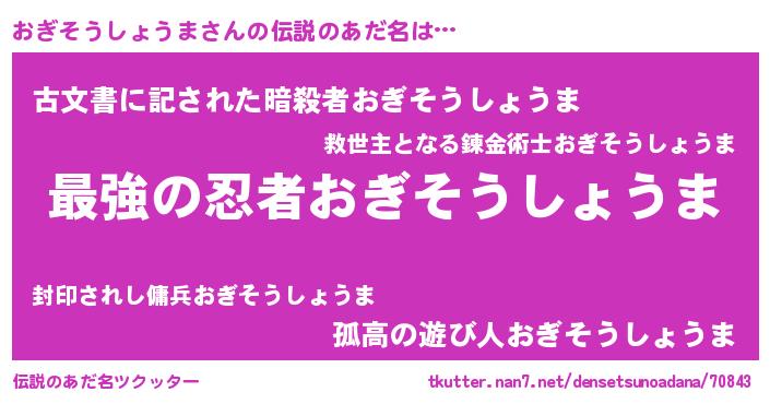 | ファンタジー風あだ名 | 『エターナルオギソウショウマー』 |