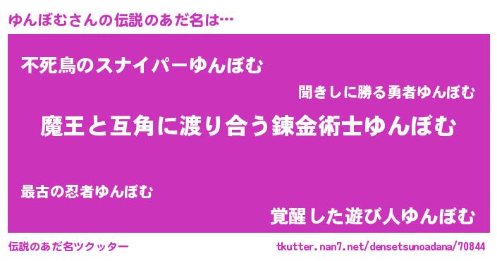 | 男性向けラノベタイトル風あだ名 | 『ノーゲーム・ノーユンボム』 |