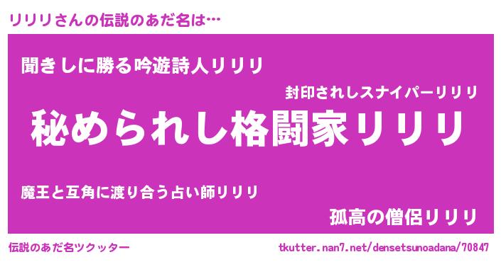 | 意味不明あだ名 | 『リリリフォーエバー』『永久保存リリリ』 |