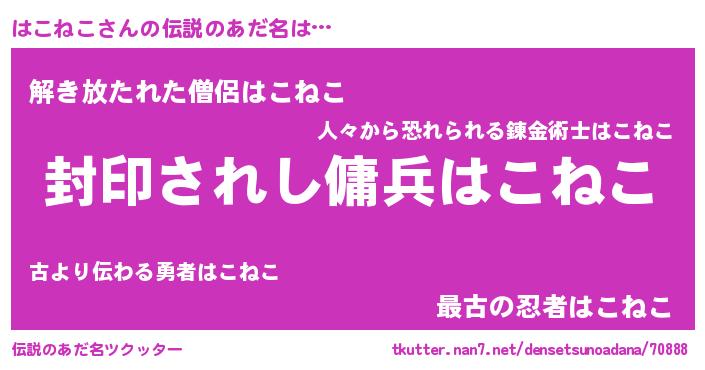 | ヒーロー風カッコイイあだ名 | 『最強戦士ハコネコ』『スーパーハコネコ』 |
