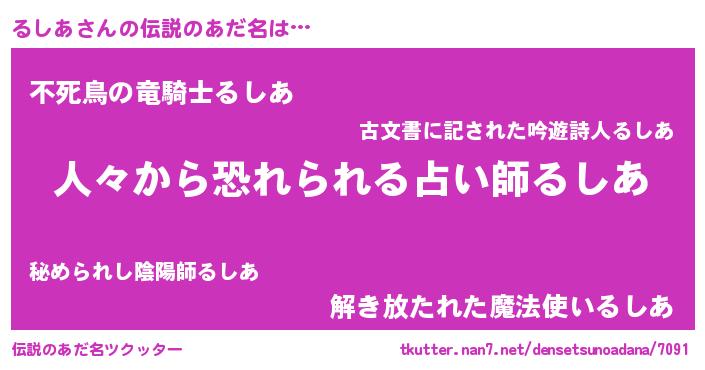 | ヘコむあだ名 | 『るしにゅー』『るしを』『豆乳』 |
