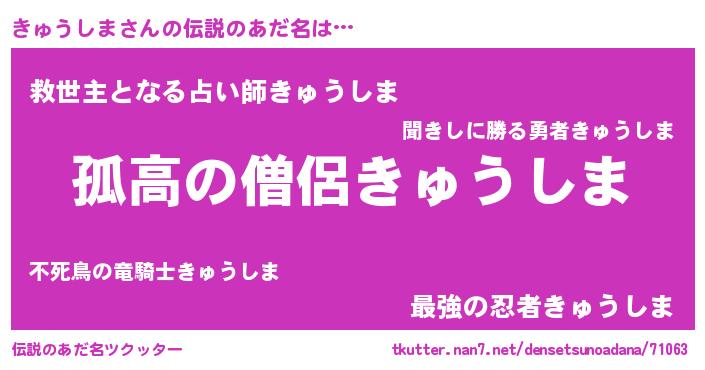 | 意味不明あだ名 | 『自称きゅうしま』『永久保存きゅうしま』 |