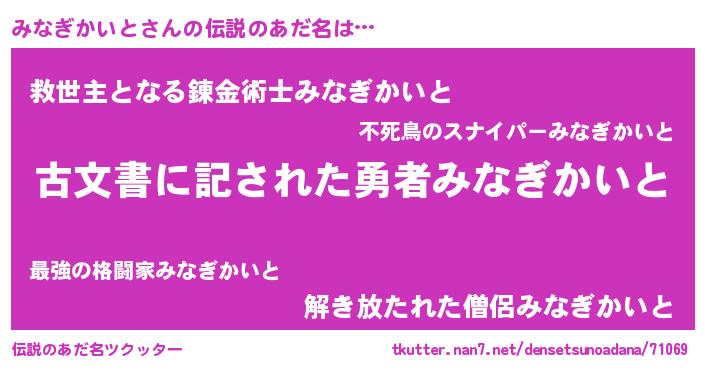| 意味不明あだ名 | 『永久保存みなぎかいと』 |