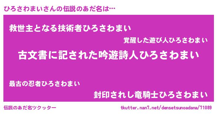 | ヘコむあだ名 | 『ひろさわまい(小並感)』『ひろにー』 |