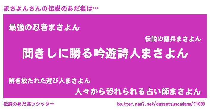 | 意味不明あだ名 | 『自称まさよん』『永久保存まさよん』 |