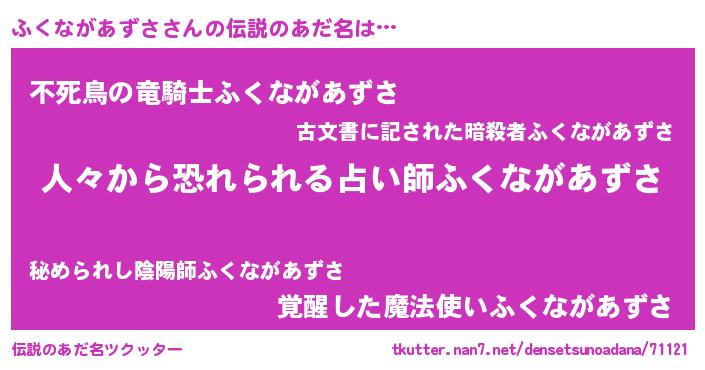 | 男性向けラノベタイトル風あだ名 | 『フクナガアズサスレイヤー』 |