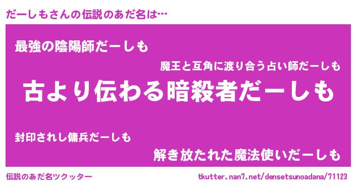 | 意味不明あだ名 | 『自称だーしも』『永久保存だーしも』 |