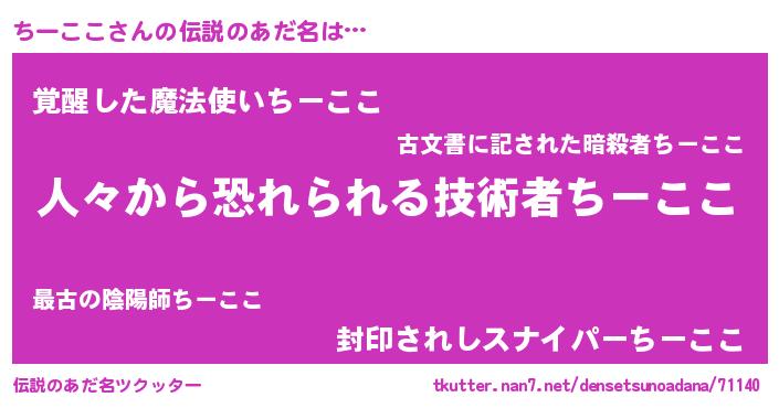 | ヒーロー風カッコイイあだ名 | 『正義の使者ちーここ』『天弓騎士チー』 |