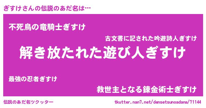 | 意味不明あだ名 | 『住所不定無職ぎすけ(85歳)』 |