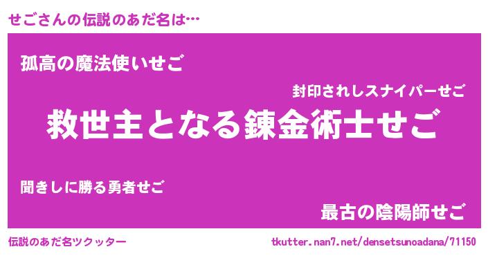 | 女子向けラノベタイトル風あだ名 | 『死神せごの再婚』『せごの玉の輿計画!』 |