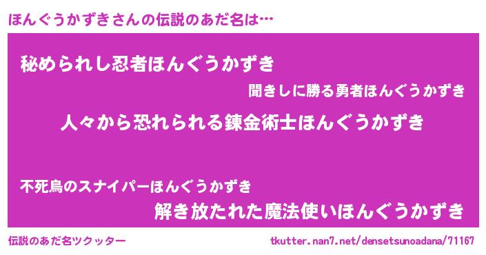 | 意味不明あだ名 | 『自称ほんぐうかずき』 |