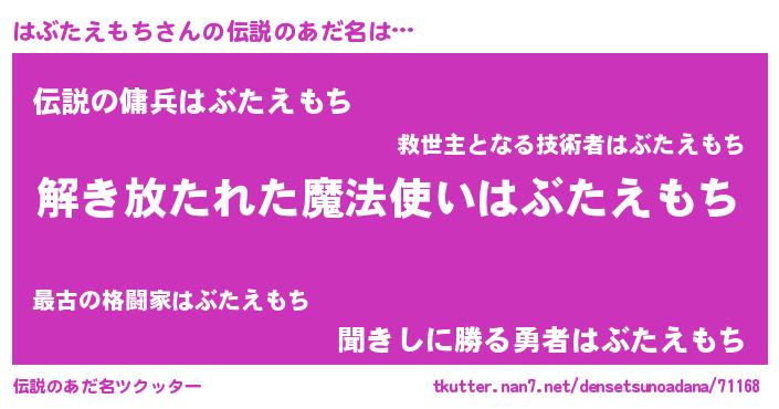 | ヒーロー風カッコイイあだ名 | 『幻影騎士ハブ』『スーパーハブタエモチ』 |