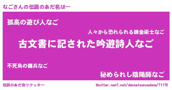 | ヘコむあだ名 | 『なご(小並感)』『なごっちょ』 |