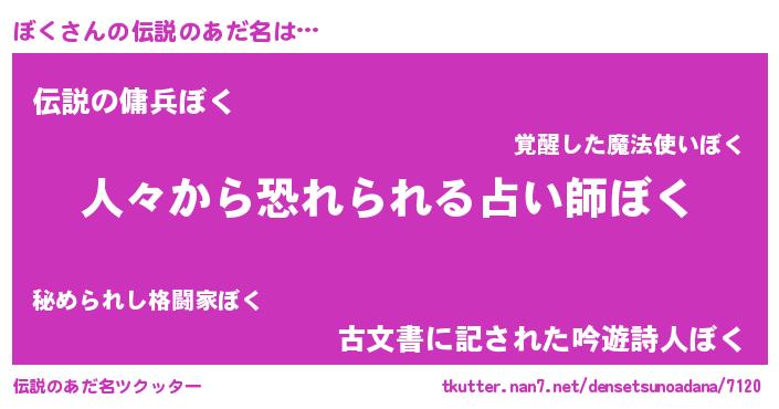 | ヒーロー風カッコイイあだ名 | 『超時空戦士ボク』『正義の使者ぼく』 |