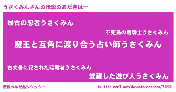 | ヒーロー風カッコイイあだ名 | 『愛の使者うさくみん』『天弓騎士ウサ』 |