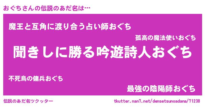 | 男性向けラノベタイトル風あだ名 | 『おぐちという概念が存在しない退屈な世界 』 |