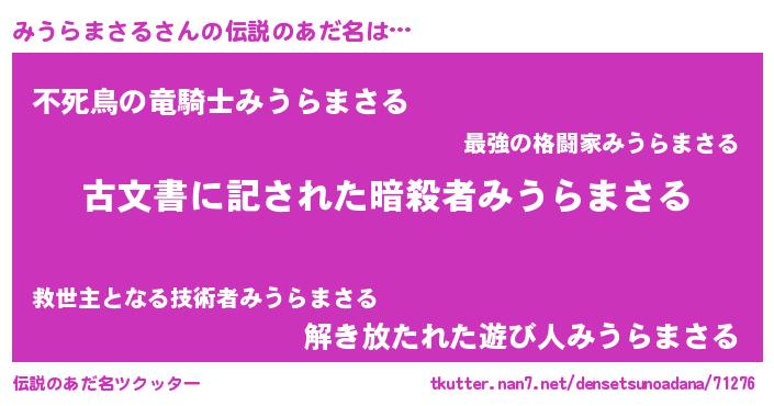 | 男性向けラノベタイトル風あだ名 | 『Re:みうらまさるから始める異世界生活』 |