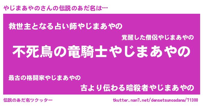 | 欧米人風あだ名 | 『やじまあやの・ステッグマイヤー』 |