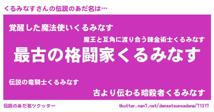 | ヒーロー風カッコイイあだ名 | 『ウルトラくるみなすマン』 |