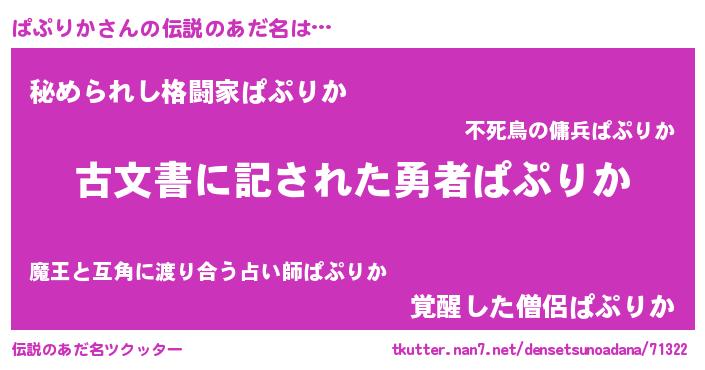 | 意味不明あだ名 | 『住所不定無職ぱぷりか(86歳)』 |