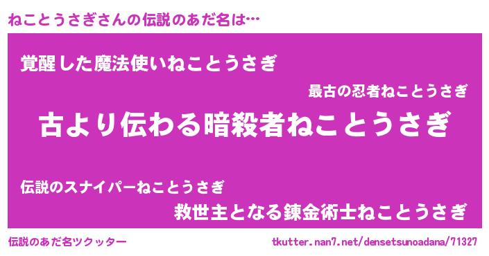 | 胡散臭い通販商品みたいなあだ名 | 『来世でも幸せになれる健康食品…その名も「ねことうさぎ」』 |