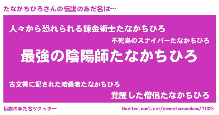 | 男性向けラノベタイトル風あだ名 | 『たなかちひろに滅ぼされるだけの簡単なお仕事です』 |
