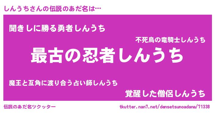 | 男性向けラノベタイトル風あだ名 | 『この素晴らしい世界にしんうちを!』 |
