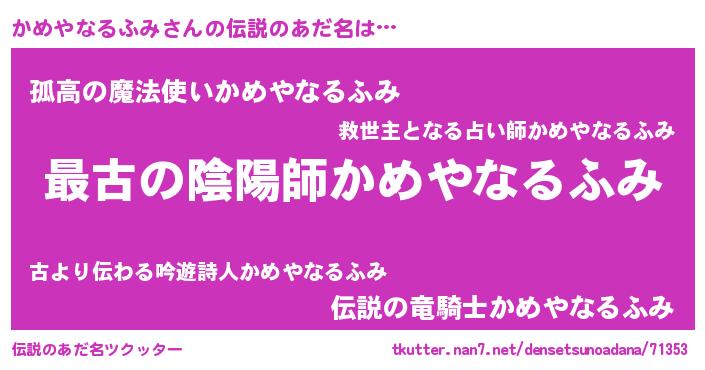 | 女子向けラノベタイトル風あだ名 | 『シンデレラかめやなるふみ家の靴箱館』 |