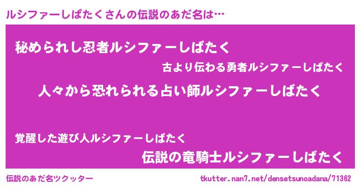 | ヒーロー風カッコイイあだ名 | 『正義の使者ルシファーしばたく』 |