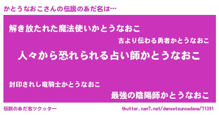 | ヒーロー風カッコイイあだ名 | 『正義の使者かとうなおこ』 |