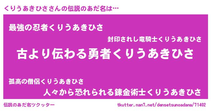 | 意味不明あだ名 | 『住所不定無職くりうあきひさ(91歳)』 |