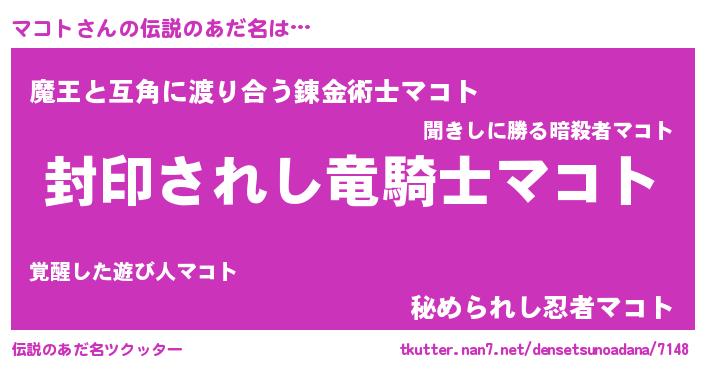 | 男性向けラノベタイトル風あだ名 | 『マコトに滅ぼされるだけの簡単なお仕事です』 |