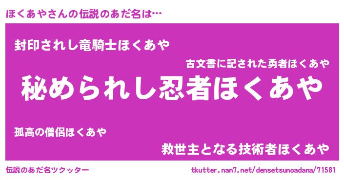 | 胡散臭い通販商品みたいなあだ名 | 『幸せが訪れる高級そうな壺…その名も「ほくあや」』 |